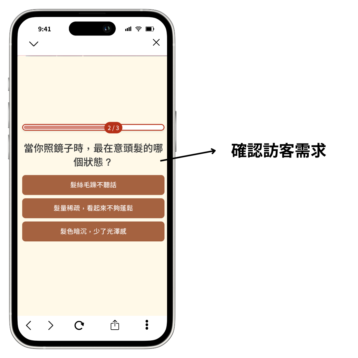 訪客點擊後導入心測畫面,註冊後開始填答,填答完畢後即可領取專屬獎勵